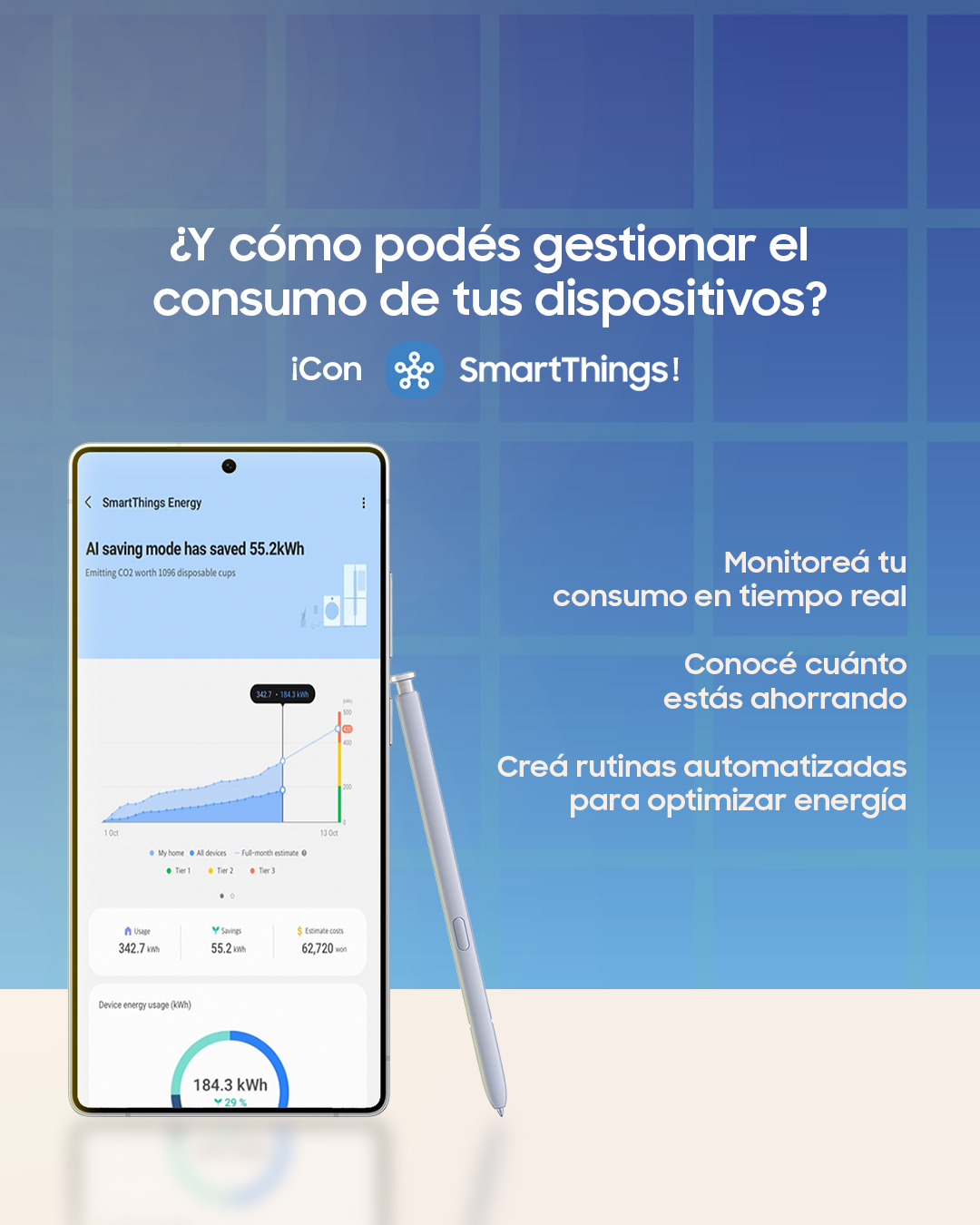 Además de la nueva etiqueta de eficiencia, muchos productos Samsung pueden conectarse a la app SmartThings, que permite monitorear y gestionar el consumo de energía desde el celular. Con funciones como AI Energy Mode, es posible optimizar automáticamente el uso de los electrodomésticos y lograr ahorros adicionales estimados de entre un 10% y un 15%, según la categoría y el producto. De este modo, la eficiencia informada en la etiqueta se traduce en ahorros concretos en la factura de luz.