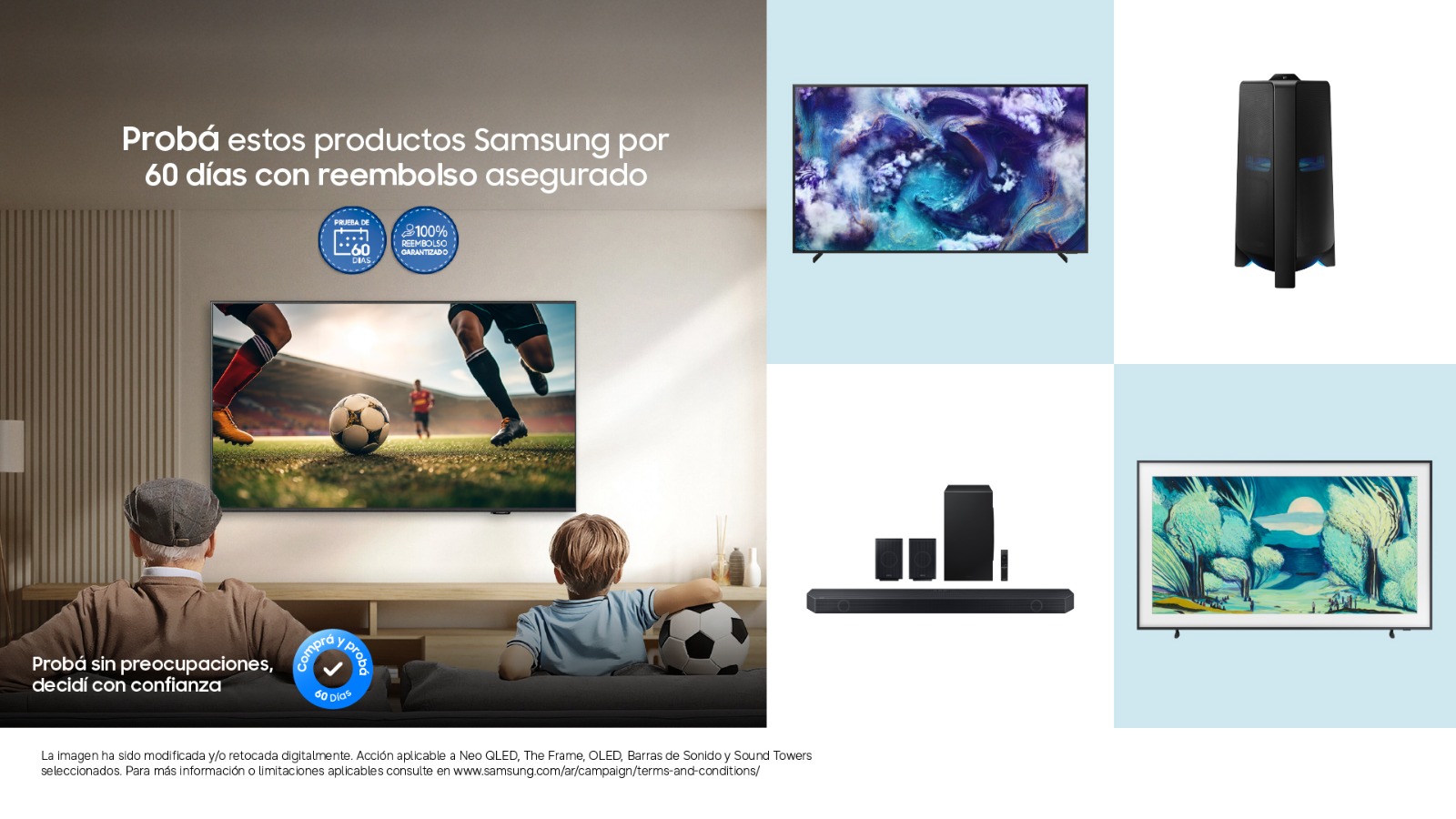 Samsung Argentina expande su programa exclusivo, Comprá y Probá, el único programa del mercado que te permite probar productos tecnológicos durante 60 días antes de tomar la decisión final de compra. A partir de ahora, la iniciativa suma: televisores Neo QLED y torres de sonido, para que más personas puedan experimentar la tecnología Samsung en su propio entorno y con total tranquilidad.