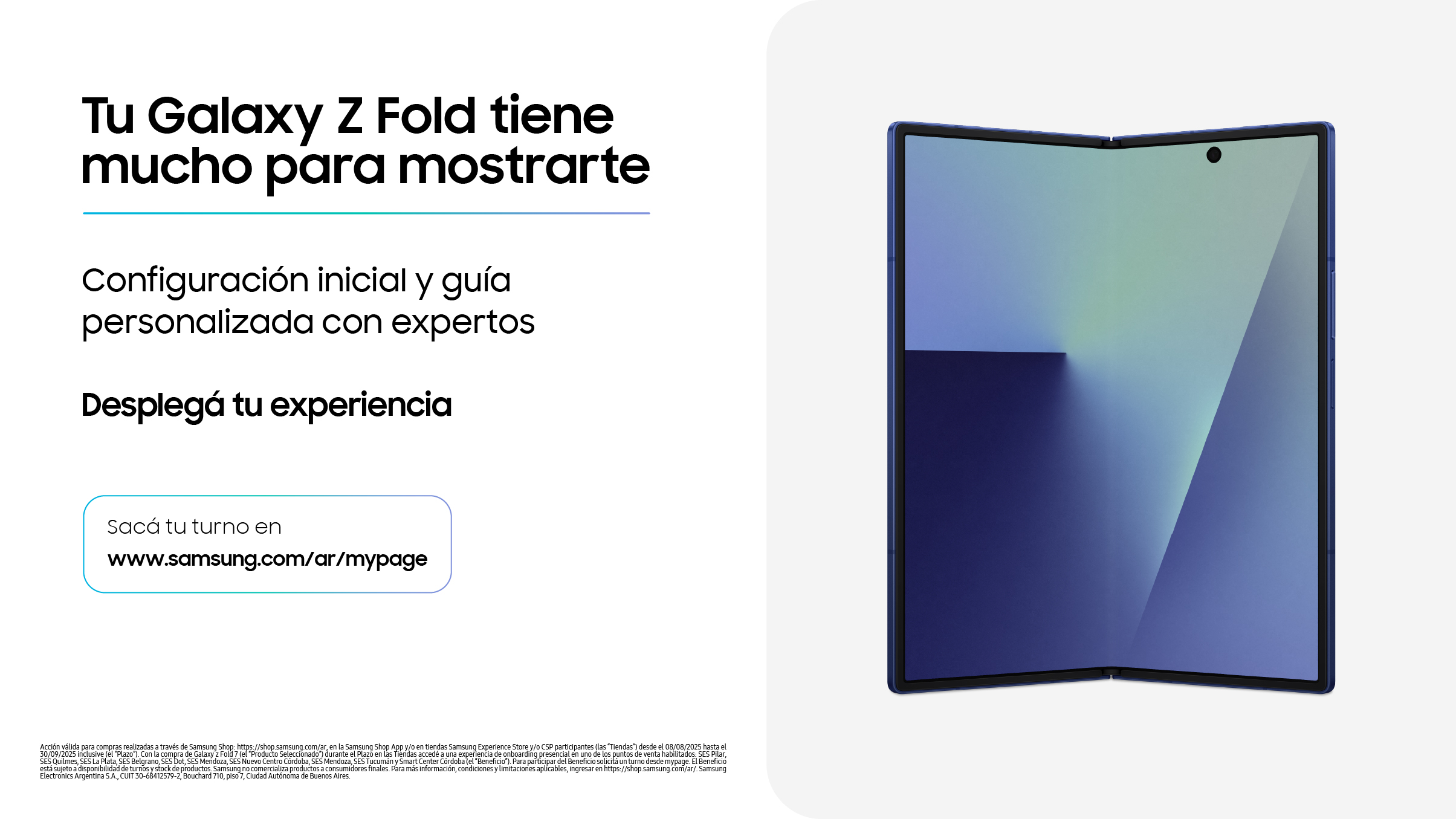 Para acompañar a los nuevos usuarios, Samsung diseñó una experiencia de bienvenida exclusiva. Quienes adquieran el Galaxy Z Fold7 podrán acceder a un training personalizado con expertos, que incluye la configuración inicial del dispositivo, soporte en el traspaso de datos a través de Smart Switch y una guía práctica para conocer y aprovechar las principales funcionalidades del smartphone.