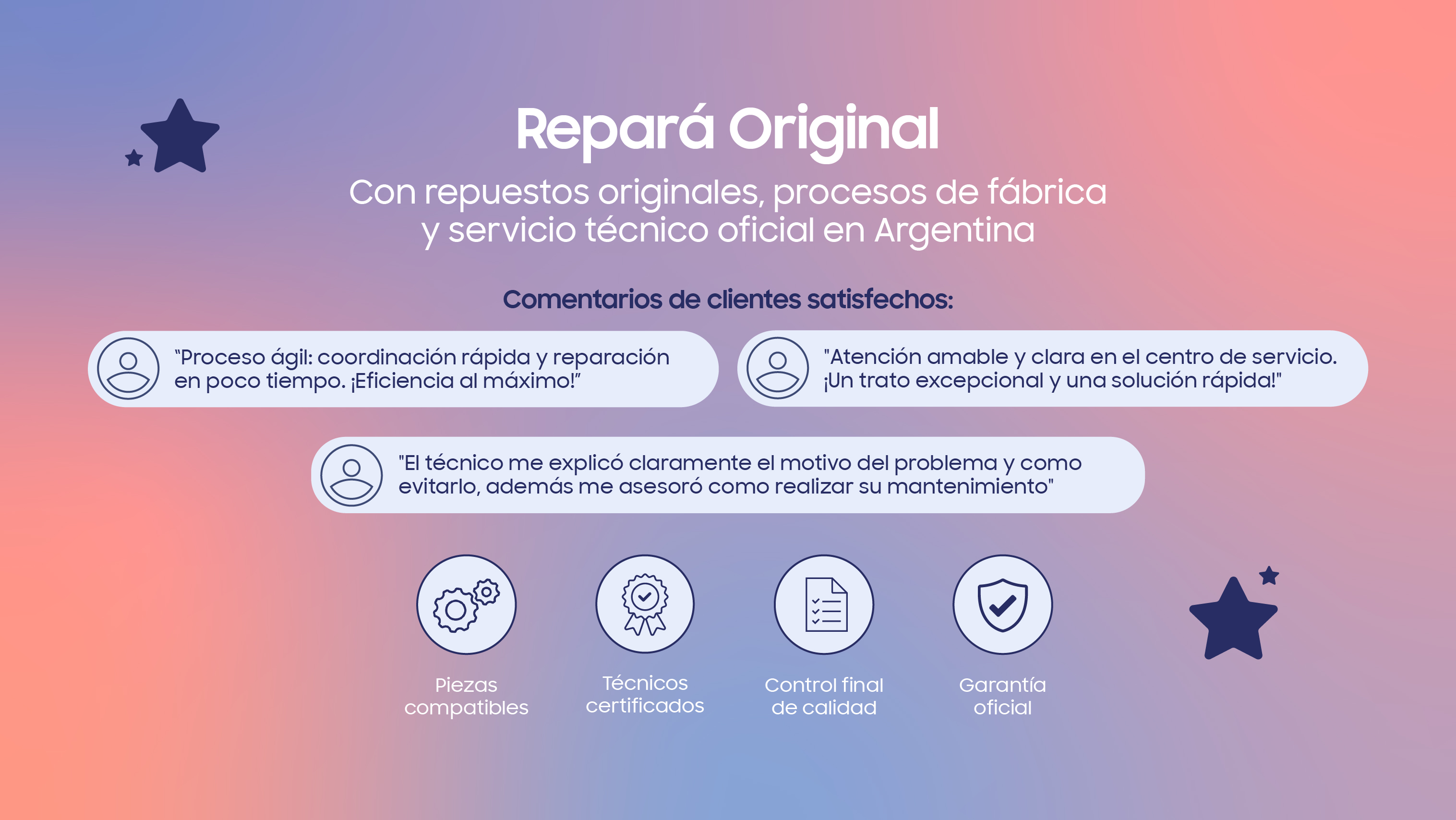 La campaña Repará Original busca concientizar sobre la importancia de realizar reparaciones en la red oficial de Samsung. Los Centros de Servicio oficiales ofrecen una experiencia que cumple con estándares de calidad equiparables a los procesos de fábrica. Cada paso está diseñado para asegurar que los dispositivos se entreguen en óptimas condiciones tras su intervención técnica.