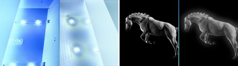 ▲ Cada imagen muestra la diferencia entre un Samsung QLED TV (izquierda) y un LCD TV convencional (derecha).