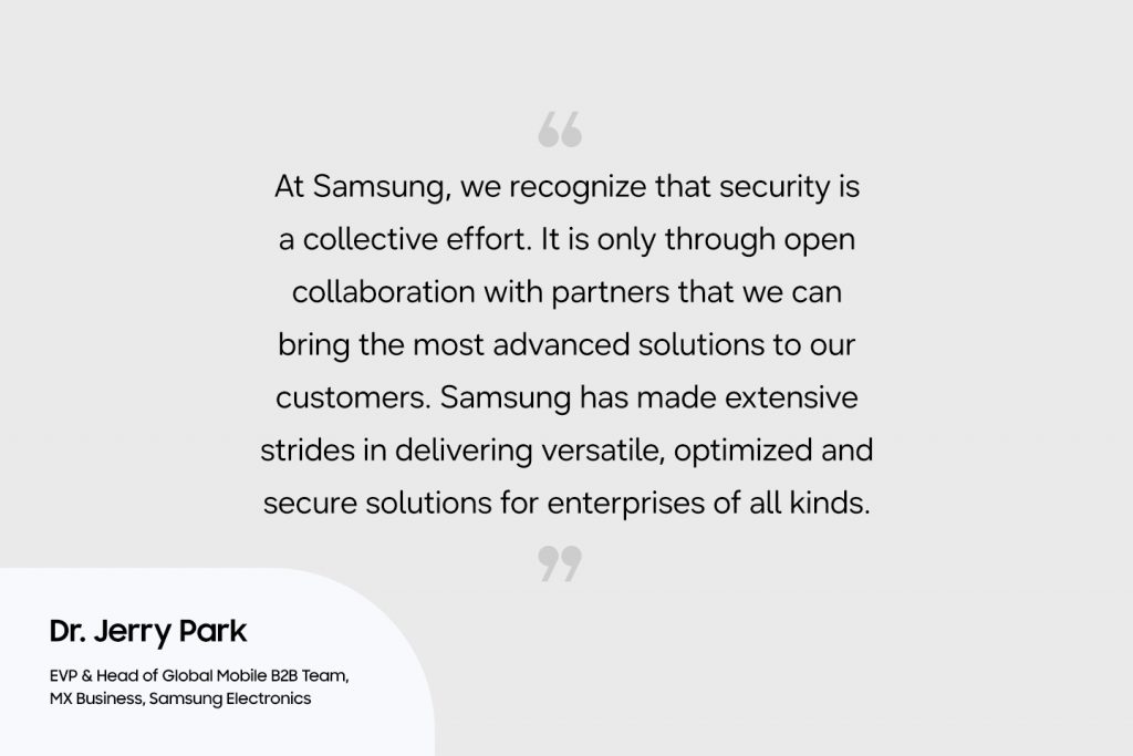 At Samsung, we recognise that security is a collective effort. It is only through open collaboration with partners that we can bring the most advanced solutions to our customers. In my time at Samsung, we’ve made extensive strides in bringing forth versatile, optimised and secure solutions[2] for enterprises of all kinds.