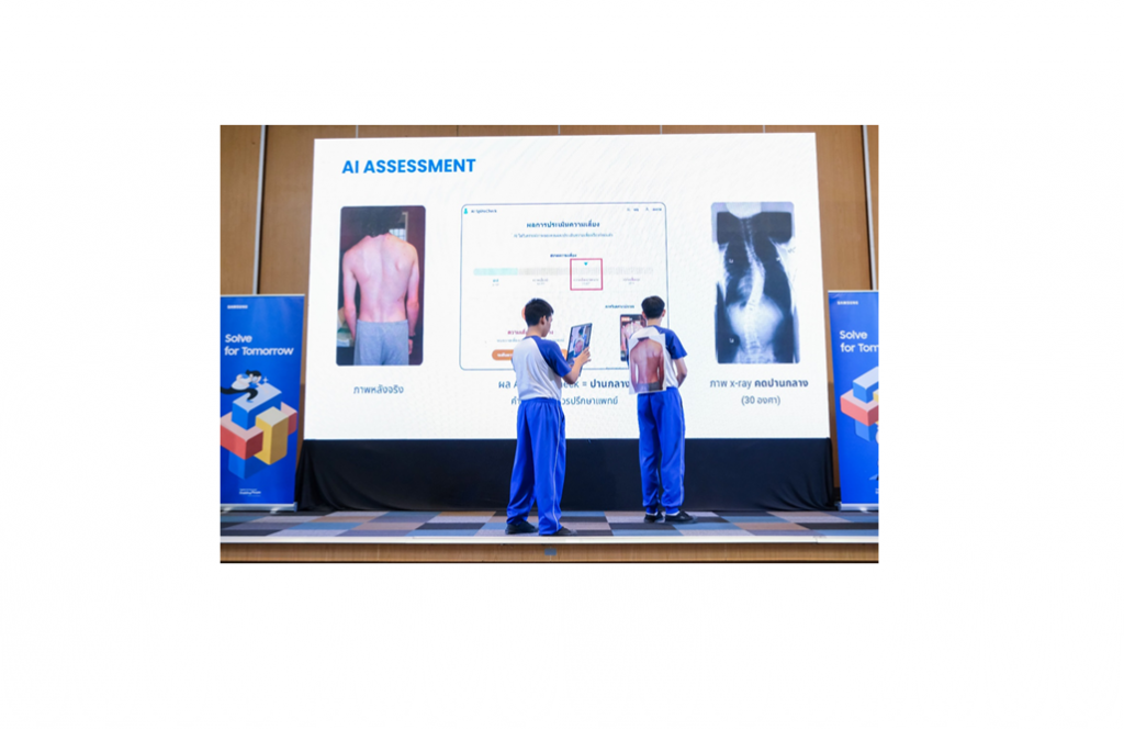 In Thailand, Team AI SpineCheck set out to improve early detection of scoliosis after seeing many high school students needing spinal braces or surgery due to late diagnosis-leading to higher treatment costs for more advanced cases. Current screening methods often depend on medical personnel and can be inaccessible or inconsistent for local communities. AI SpineCheck simplifies this process with an AI-powered platform that analyses photos to assess spinal alignment. This offers a more accessible and convenient way to screen for scoliosis, supporting early intervention and better health outcomes.