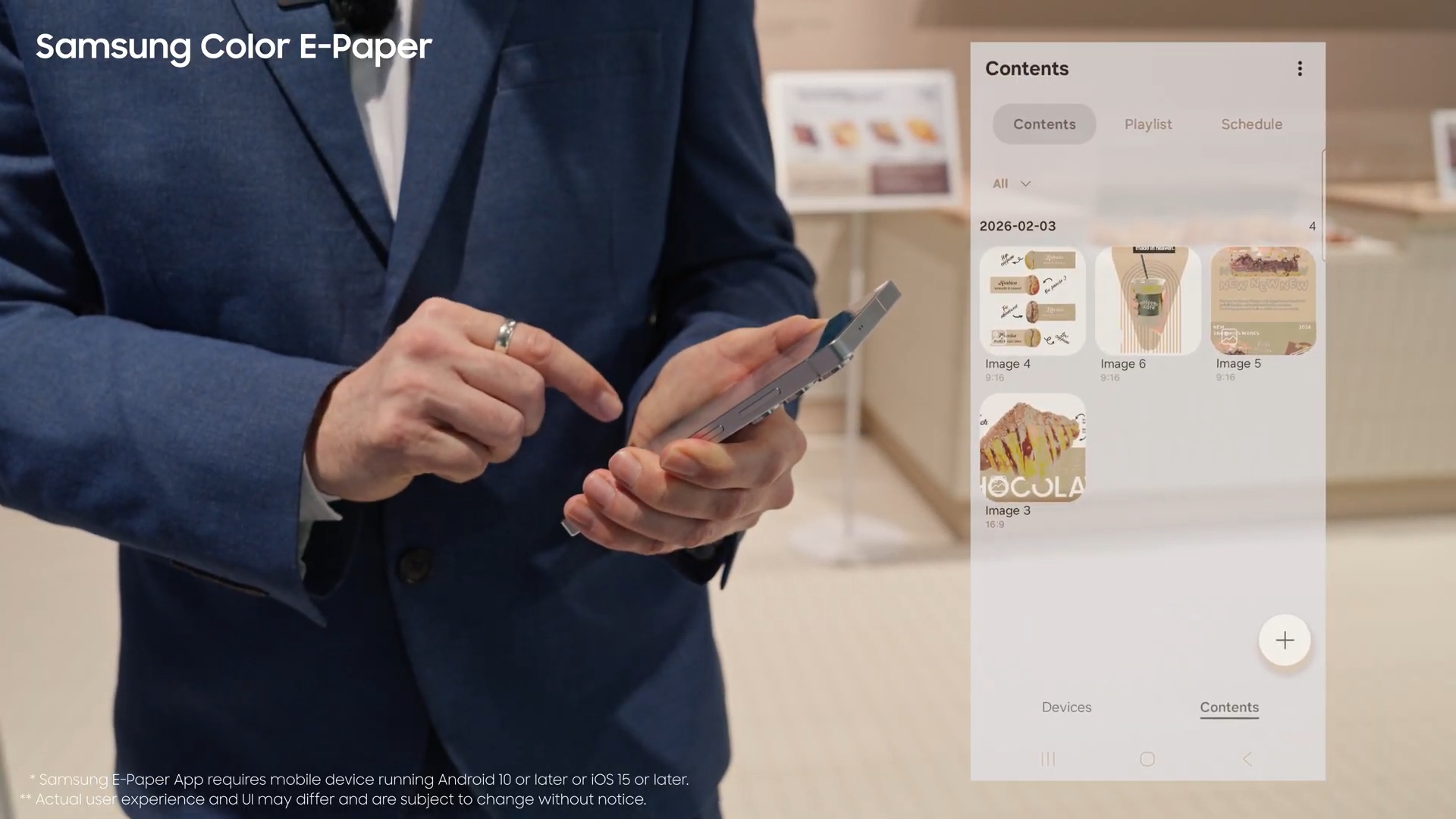 Pour les entreprises qui exploitent des écrans Color E-Paper et d’autres écrans connectés, Samsung Visual eXperience Transformation (VXT)[6] simplifie la gestion de l’affichage à distance. Les mises à jour sont diffusées instantanément sans nécessiter de visites manuelles, ce qui fait de Samsung Color E-Paper une solution de signalisation intelligente idéale pour les entreprises de toutes tailles, qu’il s’agisse de petits détaillants ou de grandes franchises.