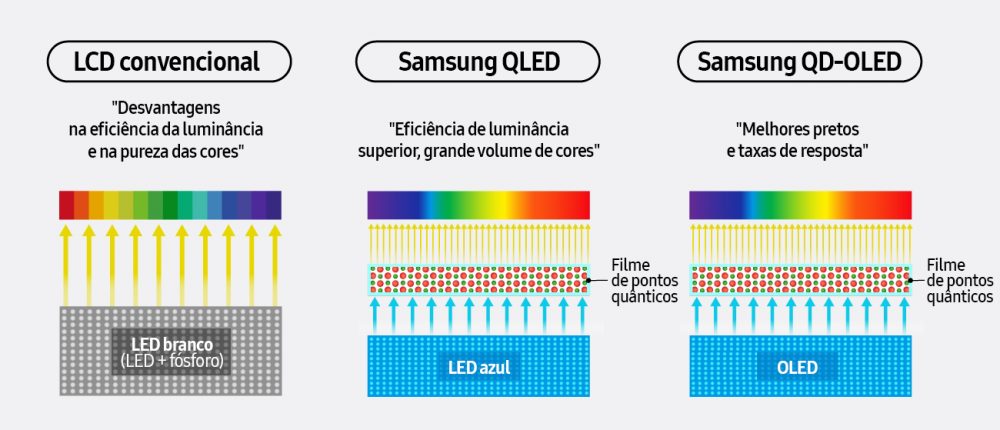 “A Samsung não apenas liderou o mercado com suas TVs de pontos quânticos baseadas em fosfeto de índio, mas também continua sendo a única empresa a integrar e comercializar com sucesso pontos quânticos em OLEDs”, disse Sohn. “Ao alavancar nossa liderança na tecnologia de pontos quânticos, continuaremos a liderar o futuro da inovação em displays.”