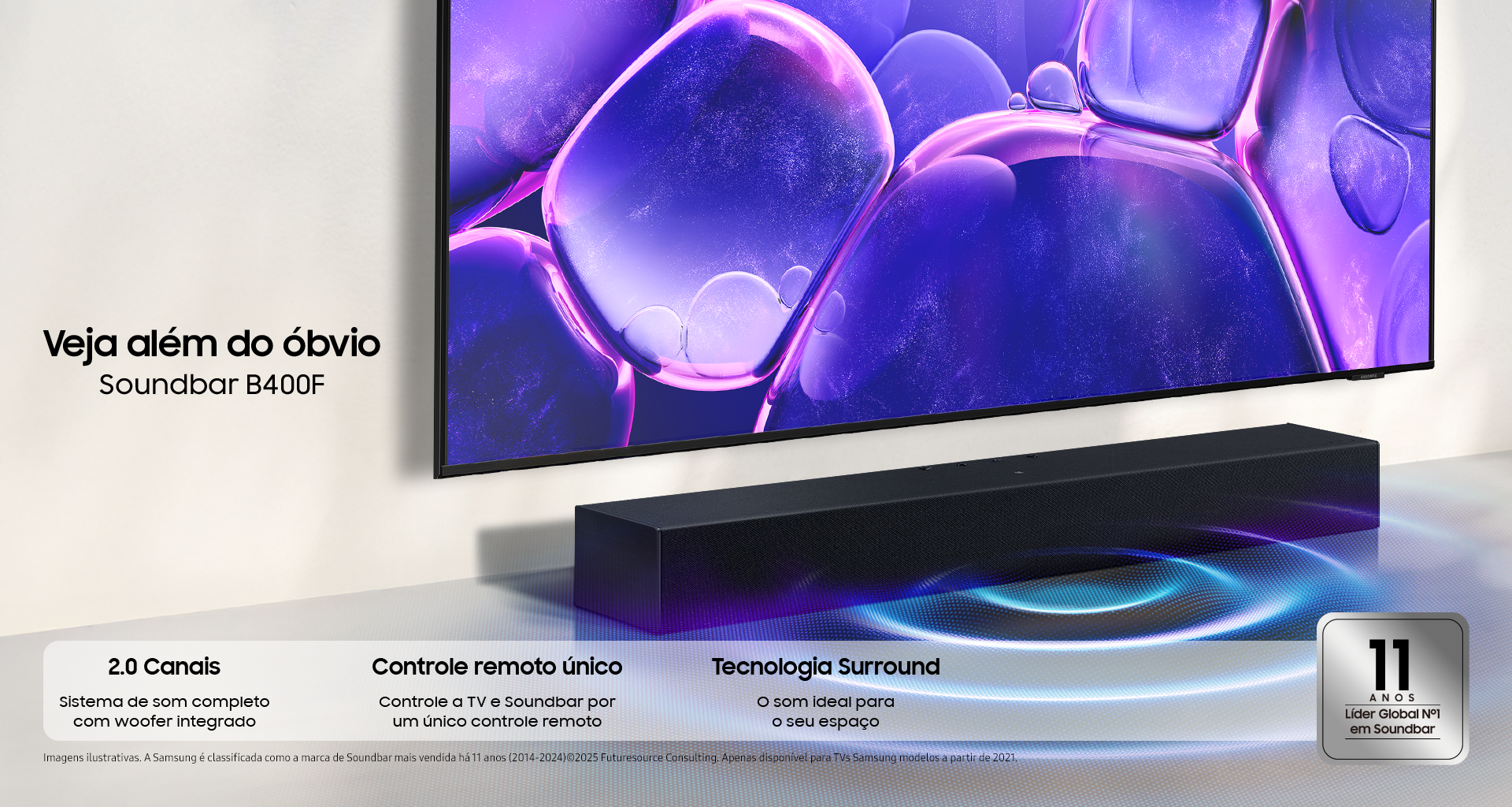 1 A Samsung é classificada como a marca de Soundbar mais vendida há 11 anos (2014-2024)©2025 Futuresource Consulting.