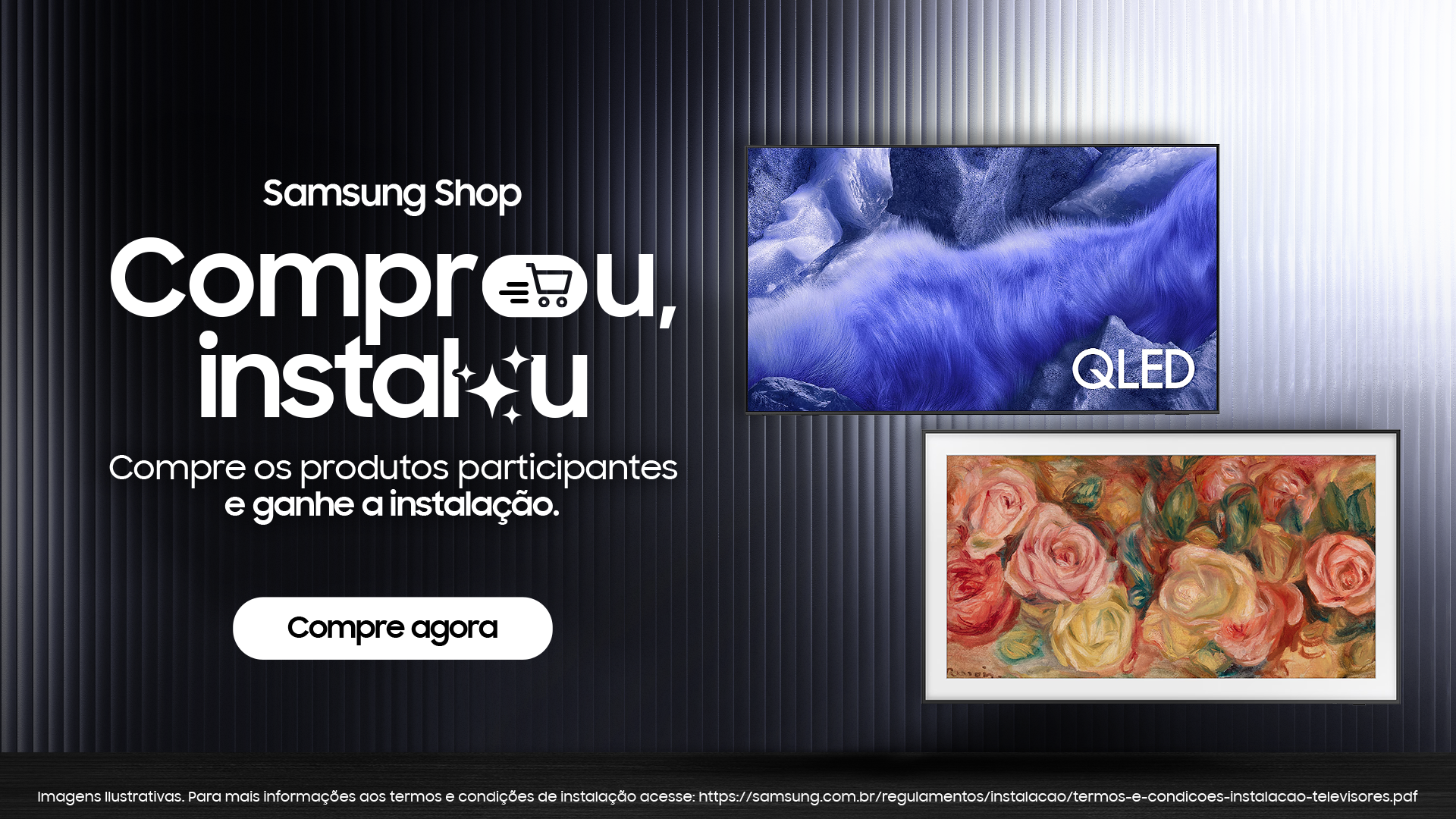 Por meio do “Comprou, Instalou”, os usuários contam com instalação de seus televisores, sem custo adicional, entre outras vantagens. O programa é válido para diferentes modelos e tamanhos. Para participar, é necessário que o produto tenha sido adquirido no site oficial da marca e esteja dentro do programa de instalação gratuita.