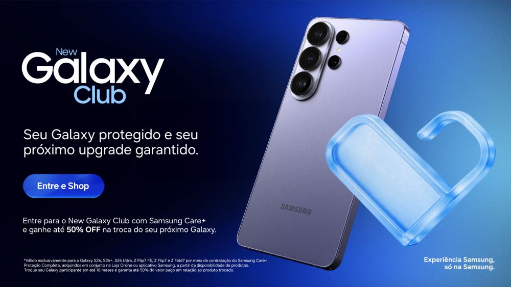 Ao adquirir um smartphone da linha Galaxy S26 e aderir ao New Galaxy Club, o consumidor terá até 18 meses para usufruir do programa. O benefício é válido para dispositivos dentro das condições de conservação previstas no regulamento do New Galaxy Club, disponível neste link.