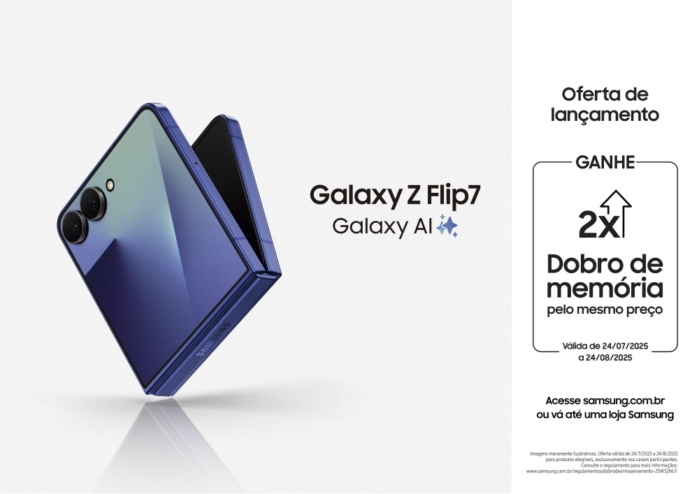 A Samsung prepara a ação especial de memória em dobro para as pessoas que adquirirem um novo dobrável da Samsung entre os dias 24 de julho e 24 de agosto de 2025.