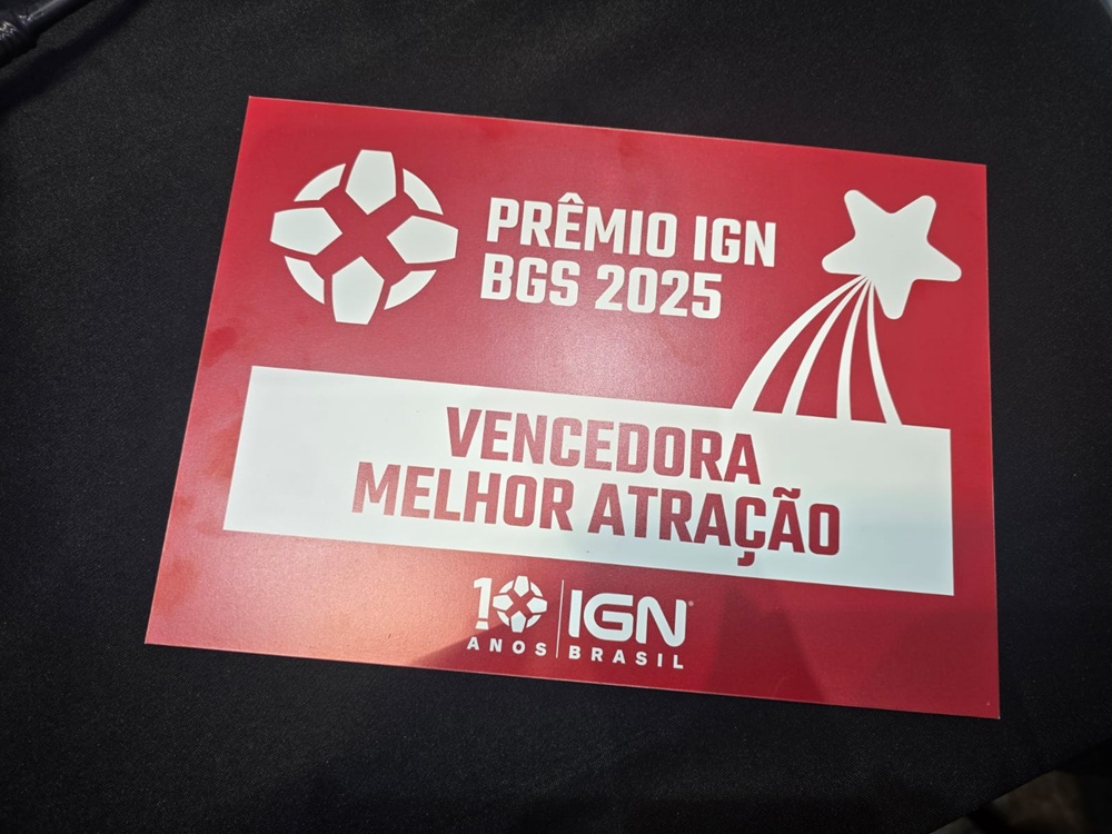 Placa de reconhecimento da IGN Brasil no estande da Samsung na BGS 2025