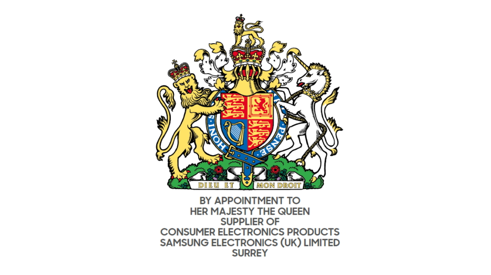 A Samsung Electronics UK Ltd. obteve a renovação de sua Royal Warrant e agora é reconhecida domo Fornecedora de Produtos Eletrônicos de Consumo, cobrindo agora uma gama mais ampla de produtos e eletrodomésticos.