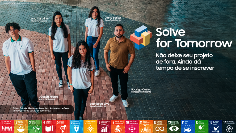 As inscrições para o Solve for Tomorrow Brasil 2025 ficam abertas até o dia 16 de julho no site oficial do programa. Podem participar as equipes das redes públicas, municipais, estaduais e federais compostas por 3 a 5 estudantes do ensino médio. Para a edição de 2025, professores de todas as áreas do conhecimento podem se inscrever como professor orientador, desde que acompanhados por um professor parceiro da área das Ciências da Natureza ou da Matemática. Saiba mais clicando aqui.