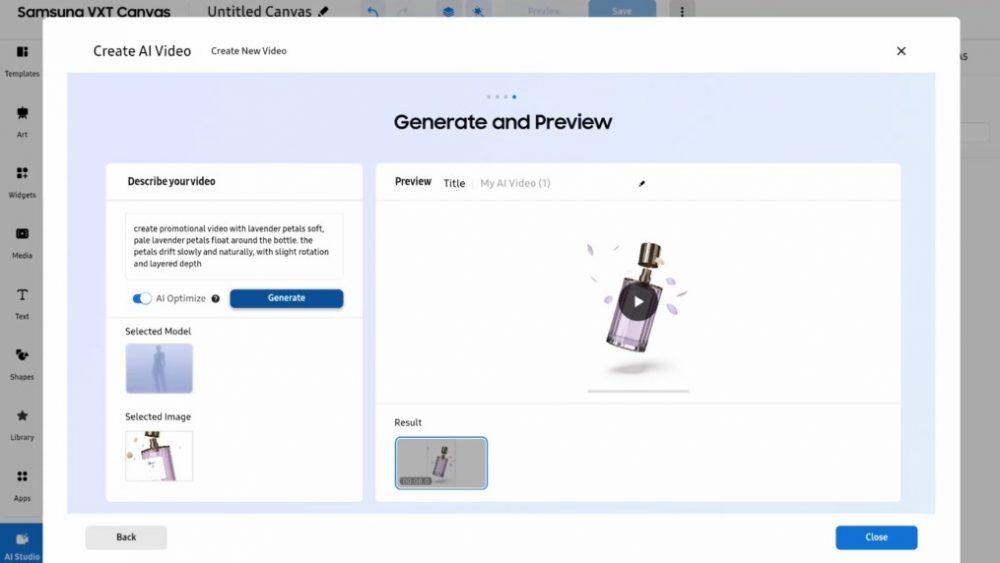 ▲ O AI Studio do Samsung VXT ajuda a criar conteúdo de vídeo pronto para sinalização digital.