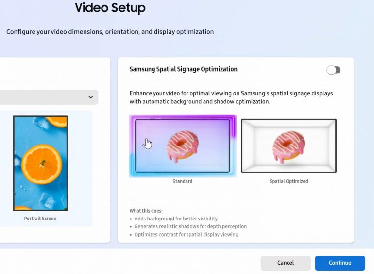 ▲ O AI Studio oferece uma opção para otimizar o conteúdo para o Spatial Signage.