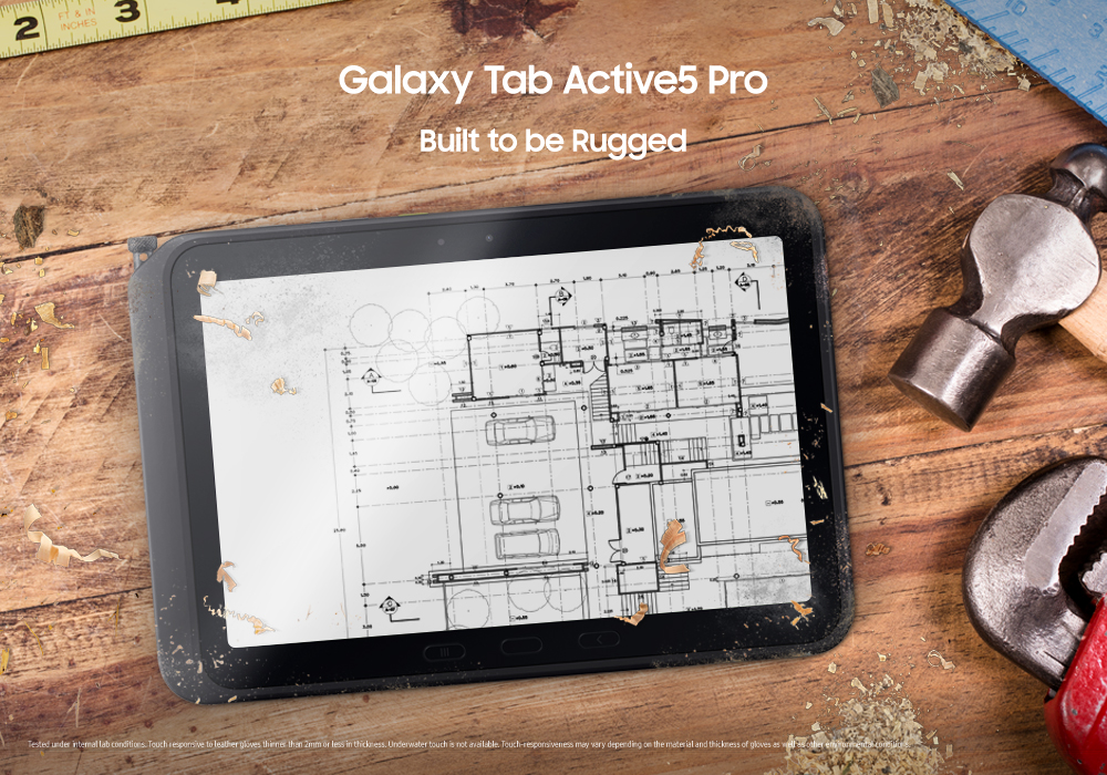 Both devices also offer Vision Booster[14], which enhances outdoor visibility by improving screen readability in bright environments. The Galaxy Tab Active5 Pro further builds on this with an upgraded display brightness of up to 600 nits — a notable increase from 480 nits in the previous model — ensuring clearer visuals even in challenging lighting conditions. Whether reviewing critical information on-site or navigating workflows outdoors, these upgrades provide better contrast, improved tone mapping, and enhanced visibility against strong illumination, allowing users to stay focused wherever the job takes them.