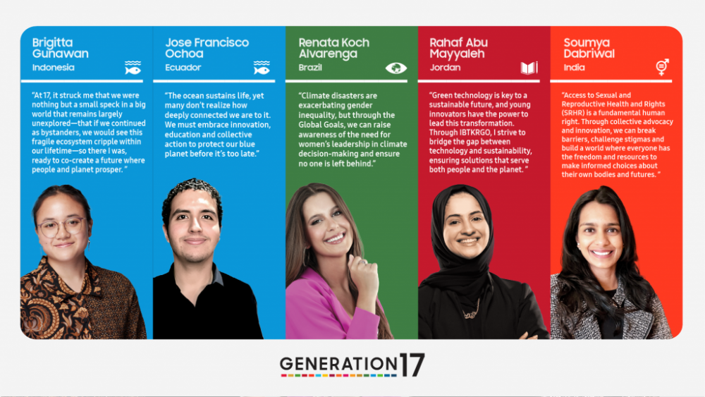 Samsung Electronics Co., Ltd. a annoncé aujourd’hui l’ajout de cinq nouveaux jeunes leaders à Generation17, une initiative en partenariat avec le Programme des Nations Unies pour le développement (PNUD) qui soutient les jeunes initiateurs du changement qui stimulent les progrès en vue d’atteindre les objectifs de développement durable (ODD), également appelés les « Global Goals ».