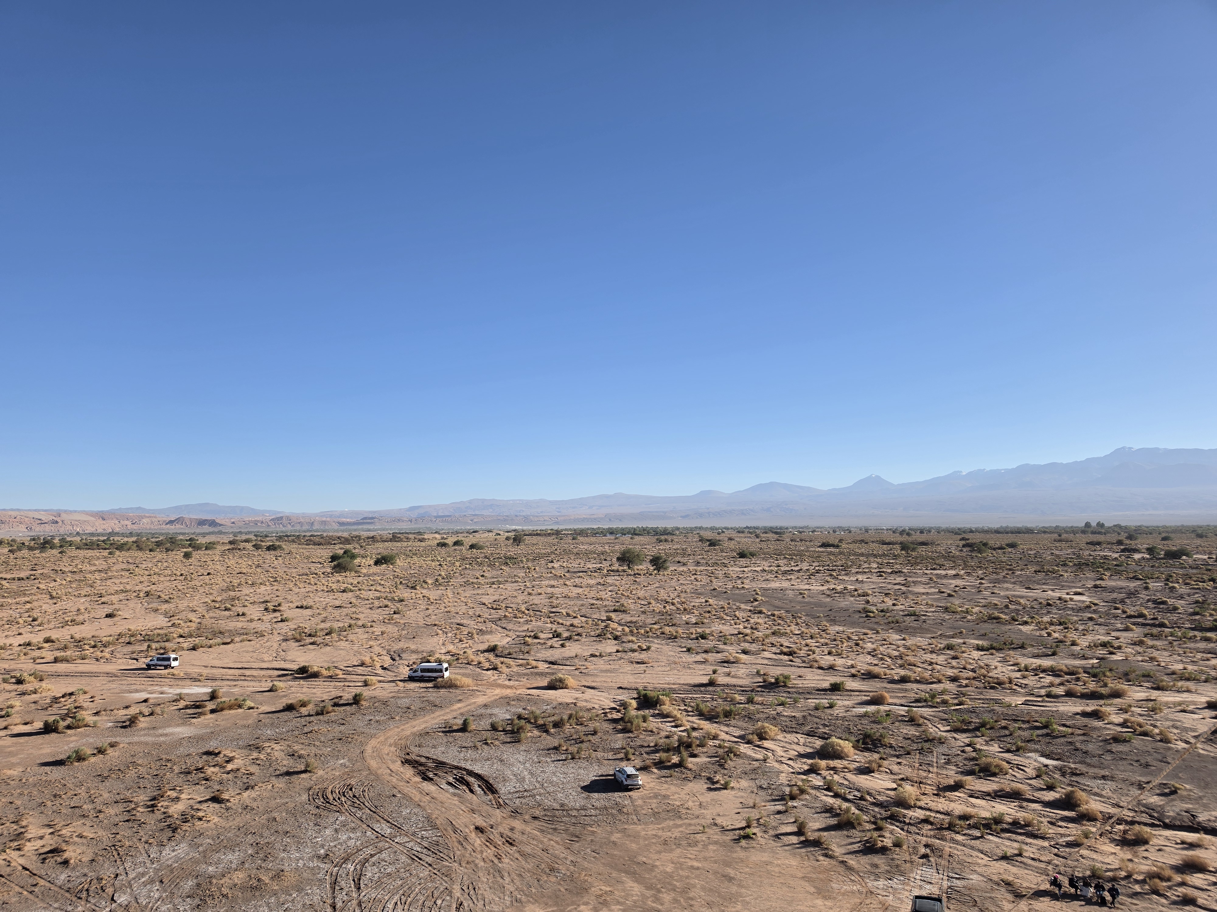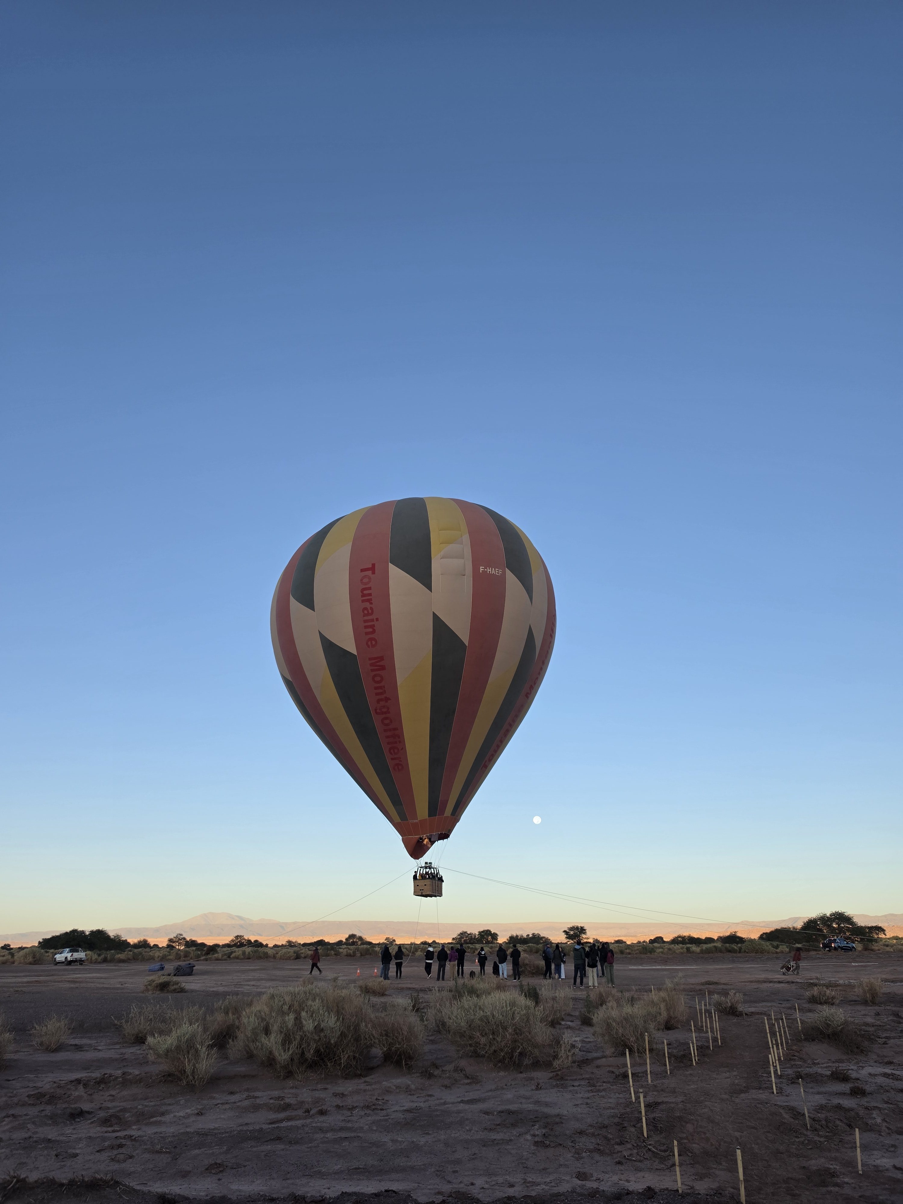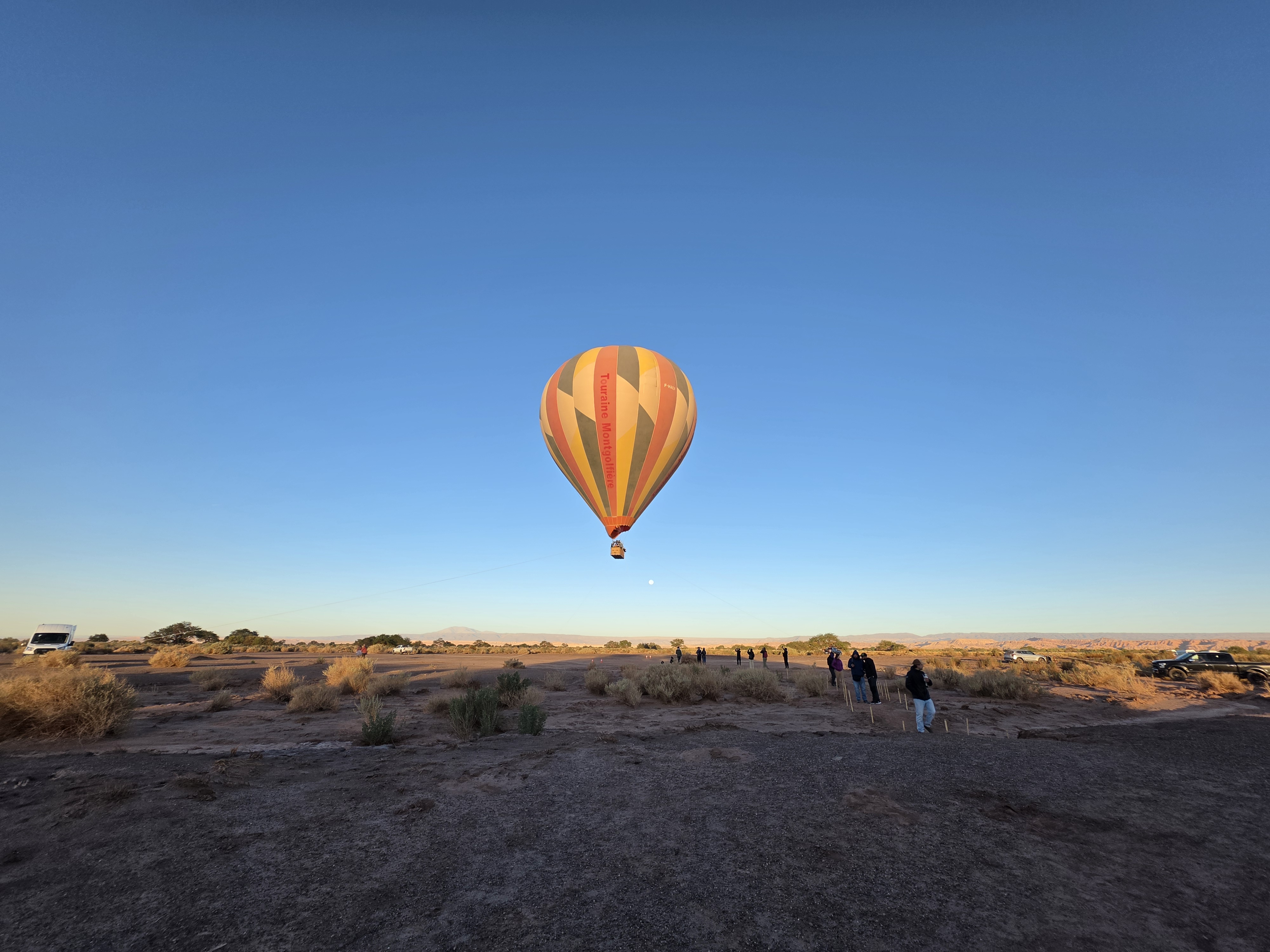 ▲ Chile Fuera del Mapa, vista hacia globo aeróstatico, amanecer en San Pedro