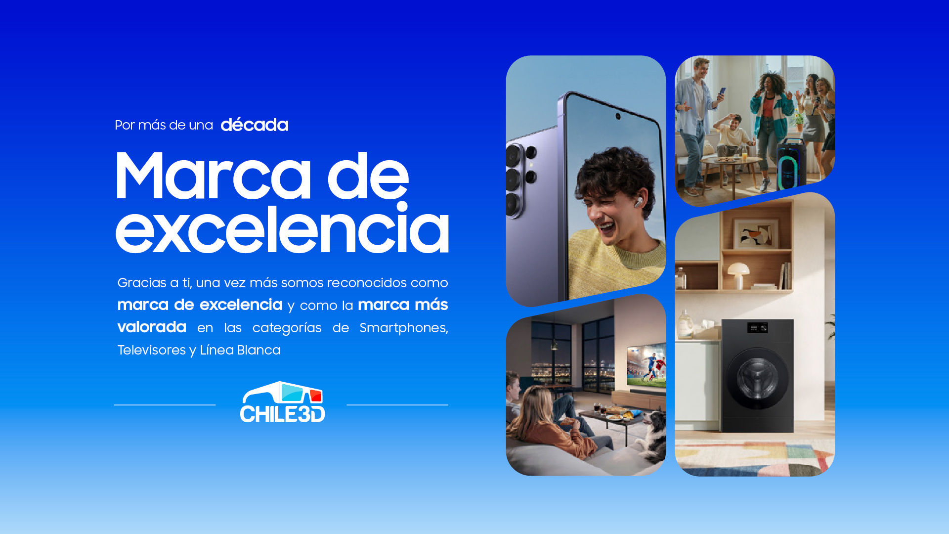Por once años consecutivos, Samsung ha sido reconocida como Marca de Excelencia en Chile3D, un hito que refleja la confianza sostenida de las personas y el vínculo que la marca ha construido con los consumidores en Chile.