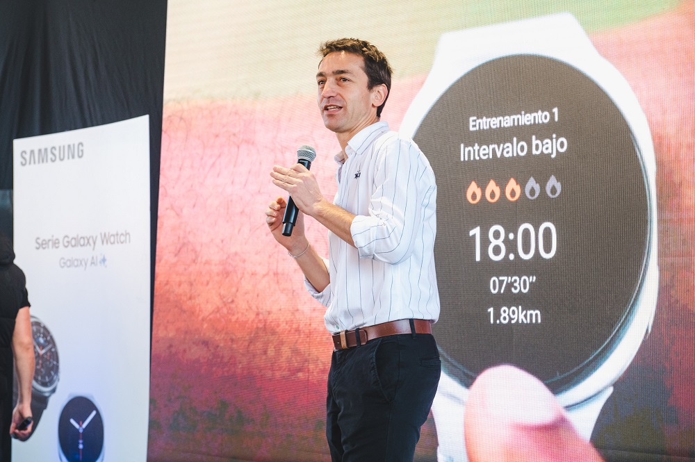 La jornada comenzó con una presentación del nuevo Galaxy Watch8 y continuó con una dinámica protagonizada por el maratonista Gonzalo Zapata, quien guió a los asistentes a través de la función Running Coach.