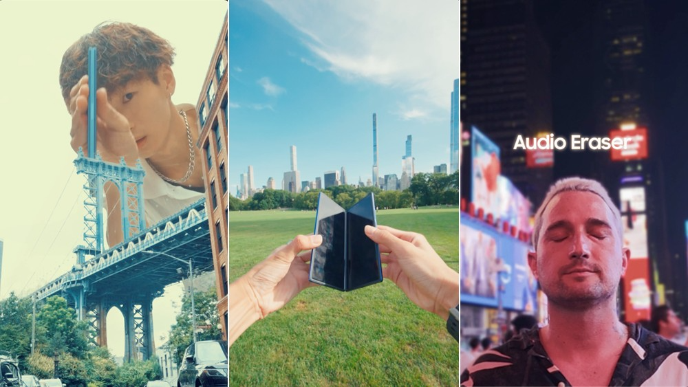 ▲ El miembro del #TeamGalaxy @uekan2b compara el elegante diseño del Galaxy Z Fold7 con la arquitectura de Nueva York (izquierda y centro). El miembro del #TeamGalaxy @granthinds reimagina la ciudad utilizando Audio Eraser y Generative Edit en su evocador corto, Alone in New York (derecha). Los trabajos ganadores aparecen en el Instagram oficial de Samsung Mobile.