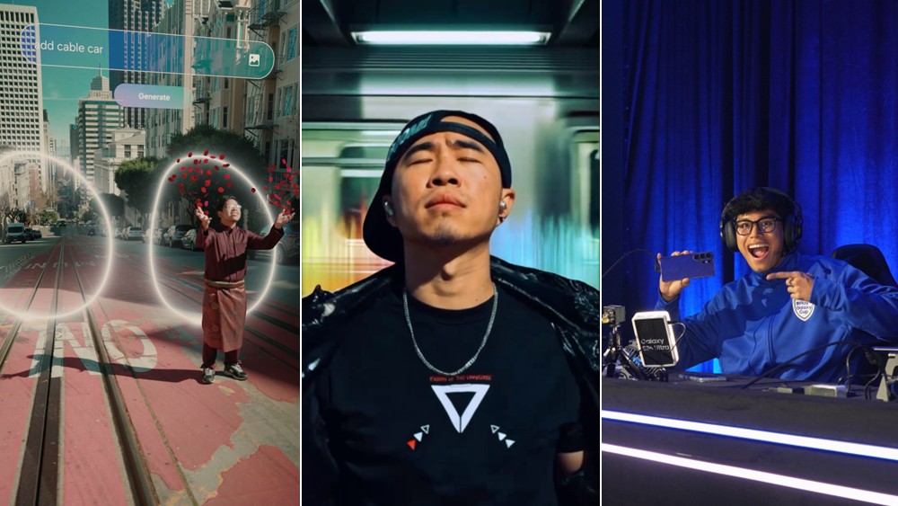 ▲ El miembro del #TeamGalaxy @sofyank96 muestra las funciones Photo Assist y Zoom del Galaxy S26 Ultra con efectos creativos y transiciones (izquierda). El miembro del #TeamGalaxy @drexlee destaca el sonido Hi-Fi de los Galaxy Buds4 Pro en diferentes lugares de San Francisco (centro). El miembro del #TeamGalaxy @nr_ihsn resume lo más destacado de la #PlayGalaxy Cup: Global Open (derecha).