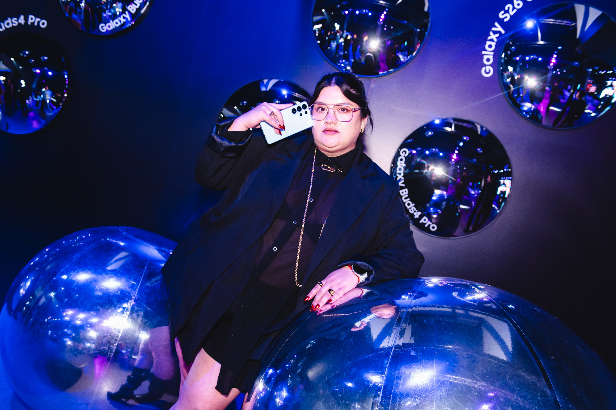 ▲ Carla Escobedo (@monrix) en photo opportunity de Galaxy Buds4 Pro