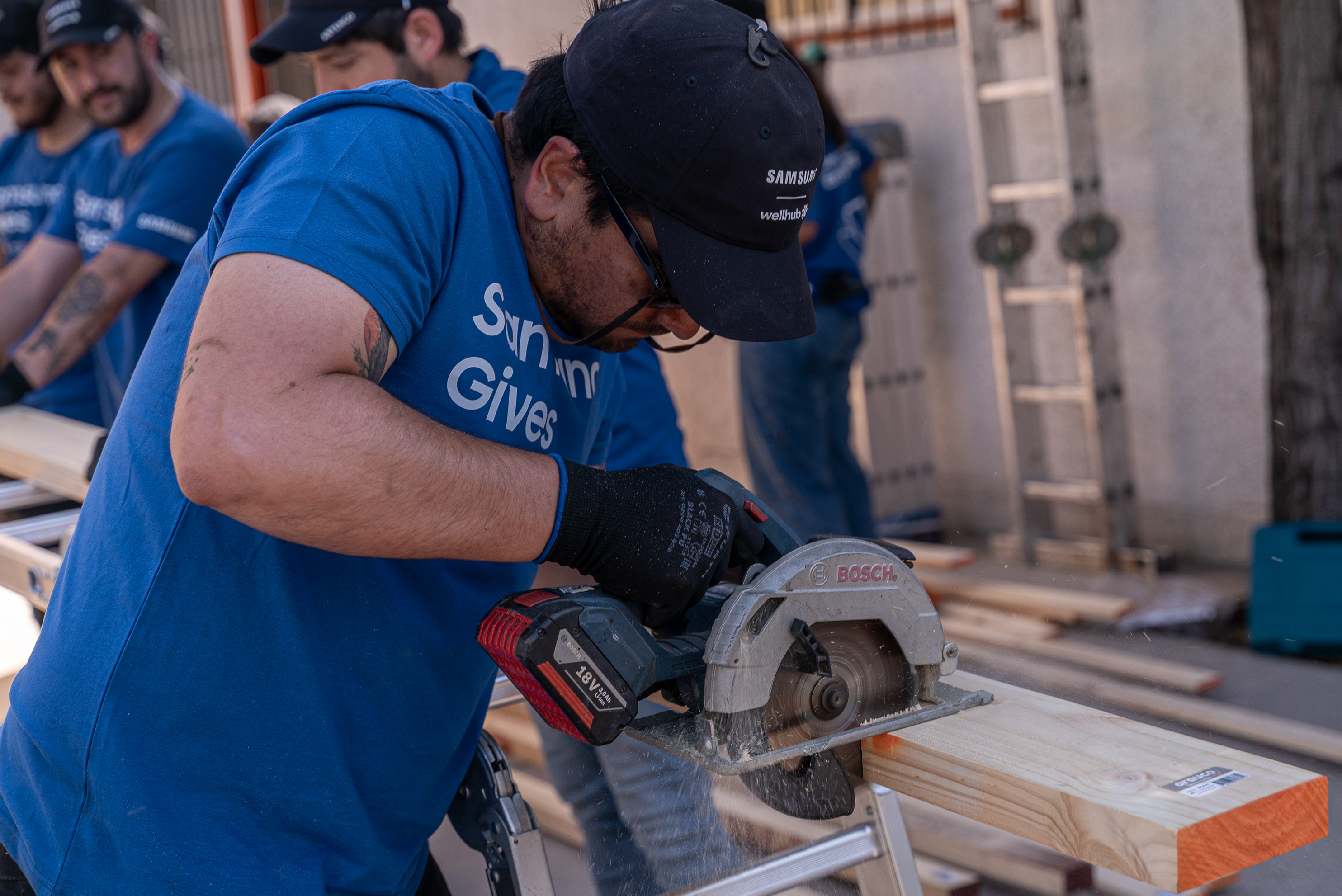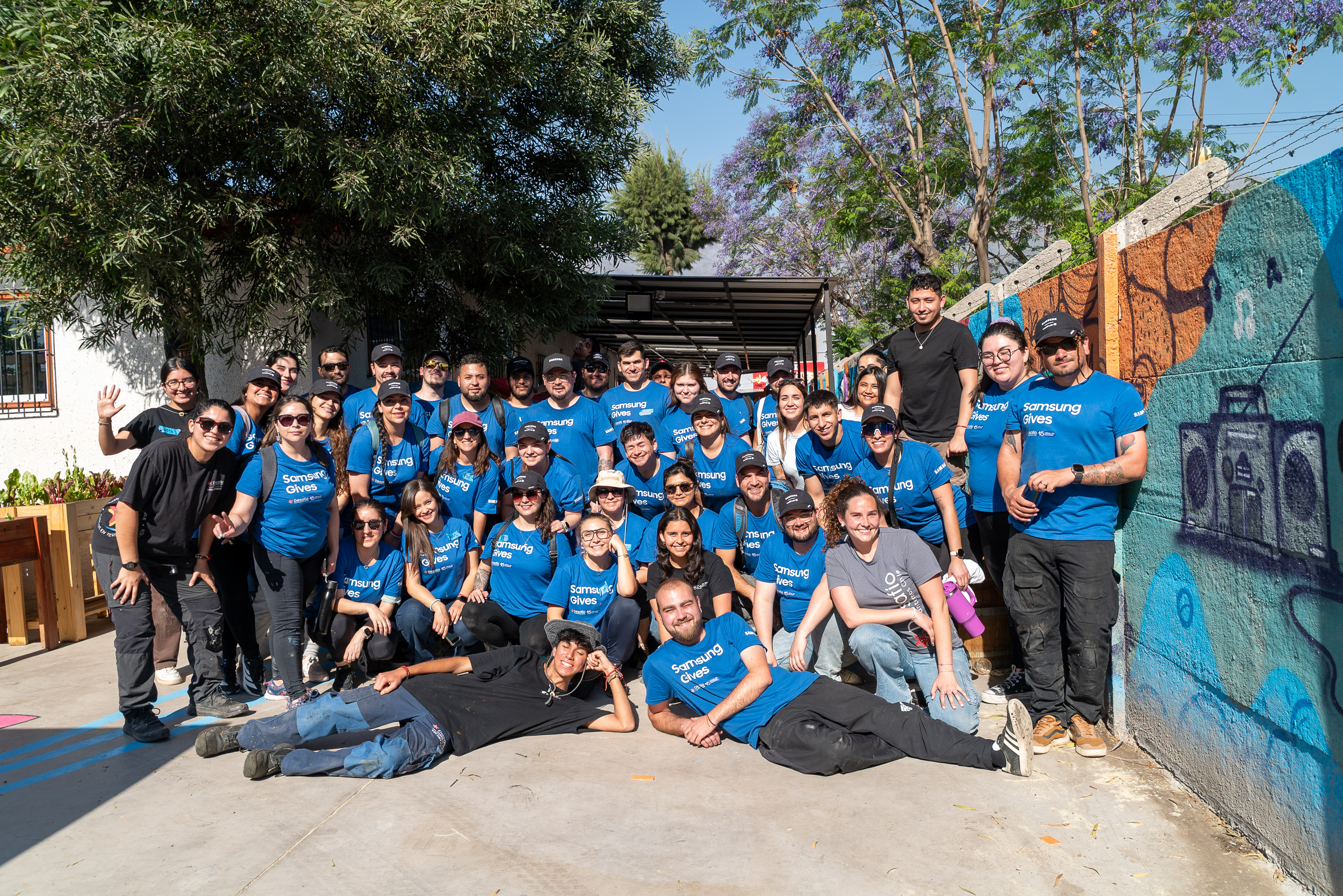 En Chile, el equipo local de Samsung, celebró el pasado 19 de noviembre junto a Desafío Levantemos Chile visitando el Centro de Salud Vida Digna. Esta ONG atiende a más de 300 niños, niñas, adolescentes, adultos y personas mayores en el ámbito biopsicosocial. Durante la jornada el equipo más 36 voluntarios de este centro trabajaron en labores de renovación y embellecimiento del local; construcción de bancas de madera, confección de una pérgola que desde ya otorga sombra a la cancha multiusos, creación y puesta en marcha de un puesto de reciclaje de dispositivos electrónicos, y un mural decorativo.