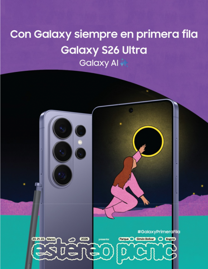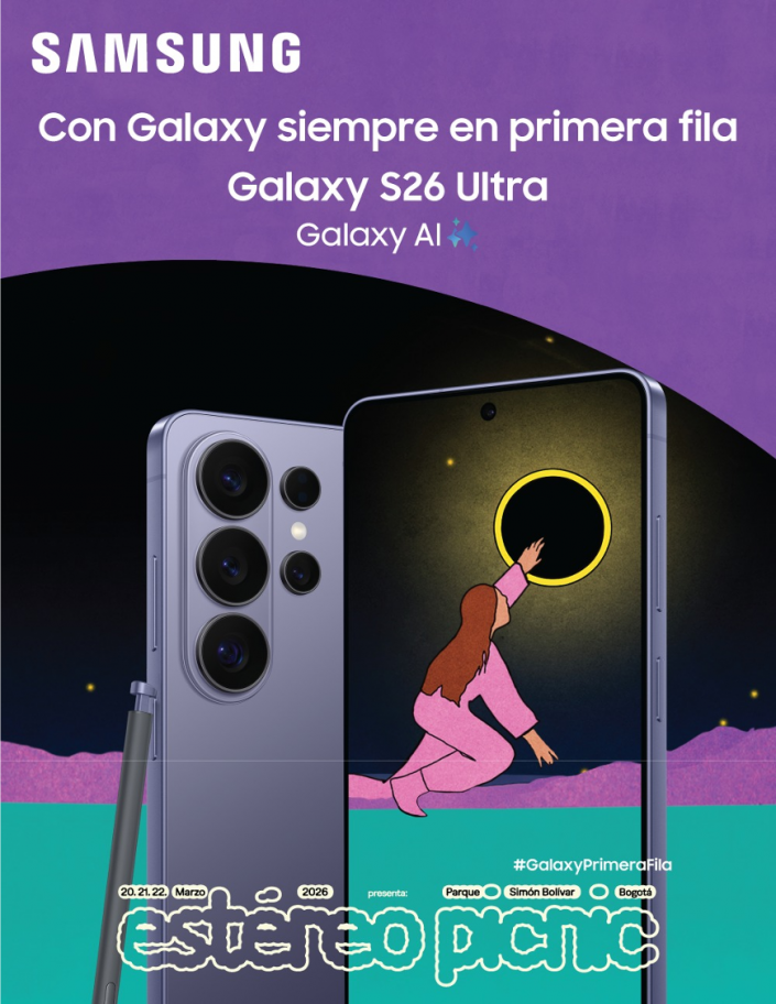 El Festival Estéreo Picnic 2026 se realizará el 20, 21 y 22 de marzo en el Parque Simón Bolívar en Bogotá, y será el escenario donde Samsung demostrará cómo la innovación, la inteligencia artificial y el nuevo portafolio Galaxy redefinen la experiencia del entretenimiento en Colombia.