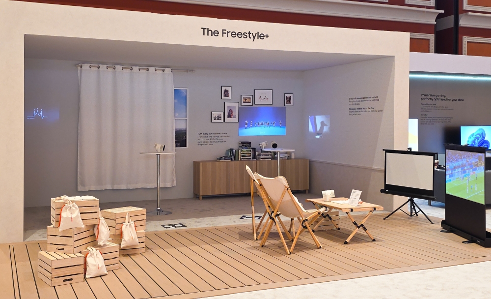 Ein Bereich der Ausstellung ähnelte einem Campingausflug und präsentierte den neuen Projektor The Freestyle+. Das Gerät wurde für größtmögliche Mobilität entwickelt und ermöglicht es Nutzer*innen, ihre Lieblingsinhalte überall zu genießen.
