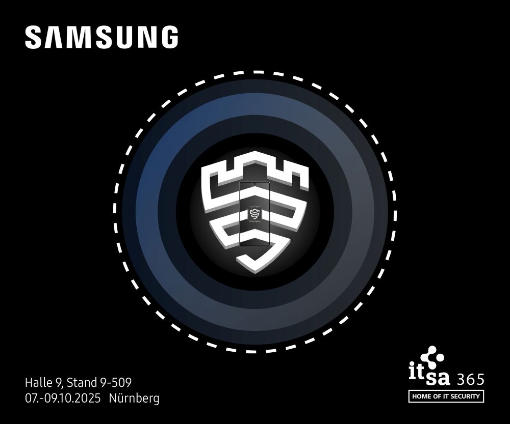 Samsung präsentiert auf der Fachmesse für IT-Sicherheit „it-sa Expo&Congress“ sein Portfolio sicherer Hard- und Software-Lösungen für Unternehmen, öffentliche Verwaltungen und Regierungsstellen. Besonderes Highlight: Gemeinsam mit der Deutsche Telekom Security und Nexus stellt Samsung eine neue Mobile-Access-Lösung vor, die das Smartphone zum sicheren digitalen Ausweis für Zutritts- und Identitätskontrollen machen soll. Zudem steht mit Samsung Knox Native eine hardwarebasierte Sicherheitslösung für Behörden und Betriebe bereit, die geschützte mobile Kommunikation ermöglichen kann. In Halle 9 am Stand 9-509 erwarten die Messebesucher*innen außerdem aktuelle Smartphones, Tablets und Notebooks mit Galaxy AI-Funktionen für den Business-Einsatz. Ausgewählte Samsung Galaxy Modelle tragen zudem seit neuestem das BSI-IT-Sicherheitskennzeichen1. Sie entsprechen damit den geltenden Sicherheitsanforderungen des Bundesamts für Sicherheit in der Informationstechnik. Die it-sa 2025 findet vom 7. bis 9. Oktober im Messezentrum Nürnberg statt.