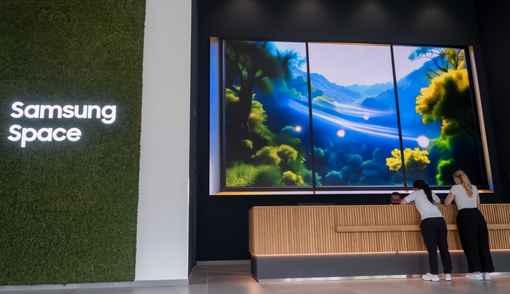 Entwickelt in Zusammenarbeit mit Niio, der internationalen Plattform für Medienkunst, verwandelt das Werk des renommierten Digitalkünstlers Ronen Tanchum (Phenomena Labs) den Eingangsbereich vom Samsung Space in ein digitales Fenster. Bildwelten, die sich in ständiger Bewegung immer weiter entwickeln, schaffen ein visuelles Erlebnis, von dem sich Mitarbeiter*innen, Partner*innen und Kund*innen stets neu inspirieren lassen können.