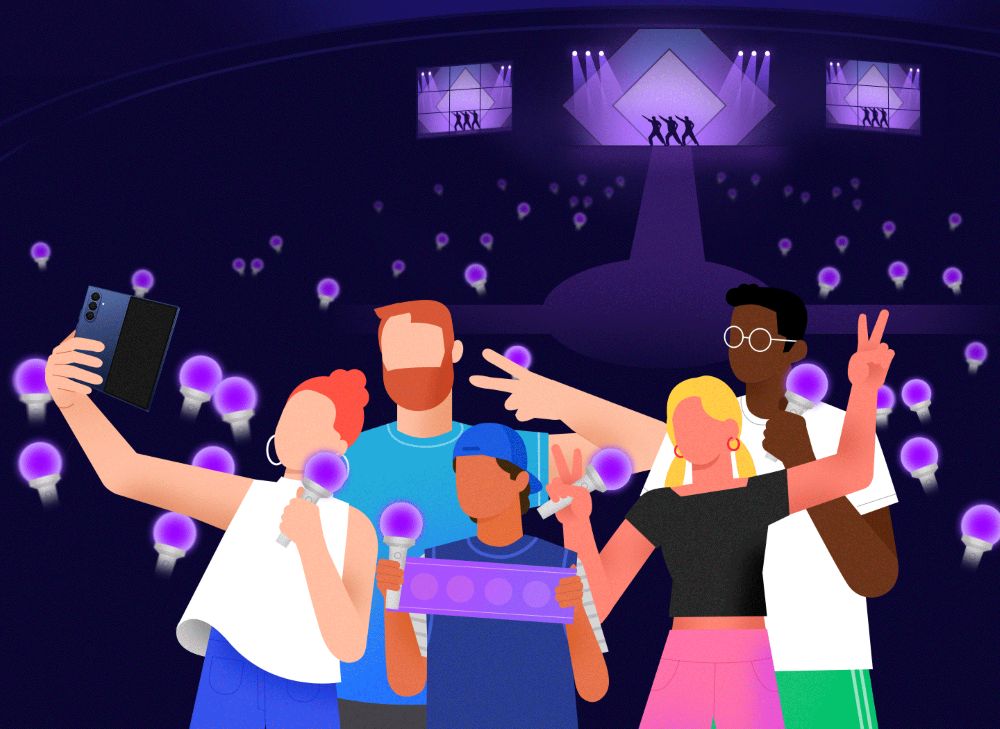 Endlich ist der große Tag des Konzerts gekommen. Der lilafarbene Leuchtstab ist aufgeladen, ebenso das Smartphone, und das Stadion ist voll bis auf den letzten Platz. Sogar wenn Nutzer*innen ganz oben auf der Tribüne sitzen, kann die 200-MP-Kamera des Samsung Galaxy Z Fold7 ihre Lieblingsstars mit klaren Details ganz nah heranholen. Mit Selfie mit größerem Bildausschnitt4 passen die neuen Freund*innen ins Bild, und die Stars auf der Bühne sind noch zu sehen. Wenn die Arena dunkel wird, kommt die angepasste Nightography zum Einsatz und verwandelt das Meer aus flackernden Leuchtstäben in scharfe ausgewogene Aufnahmen – Erinnerungen, die für immer bleiben.