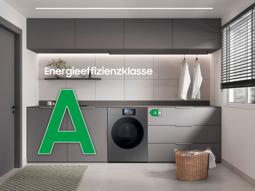 Die acht neuen Samsung Trockner1 von Samsung erfüllen die anspruchsvollen Kriterien der höchsten EU-Energieeffizienzklasse A – ganz im Sinne der Zielsetzung von Samsung, Kund*innen mithilfe fortschrittlicher Technologien eine möglichst hohe Energieeffizienz zu bieten. Die neue, EU-weit gültige Klassifizierung für Trockner gilt seit dem 1. Juli. Sie löst die alten Plusklassen ab und schafft mehr Übersichtlichkeit.