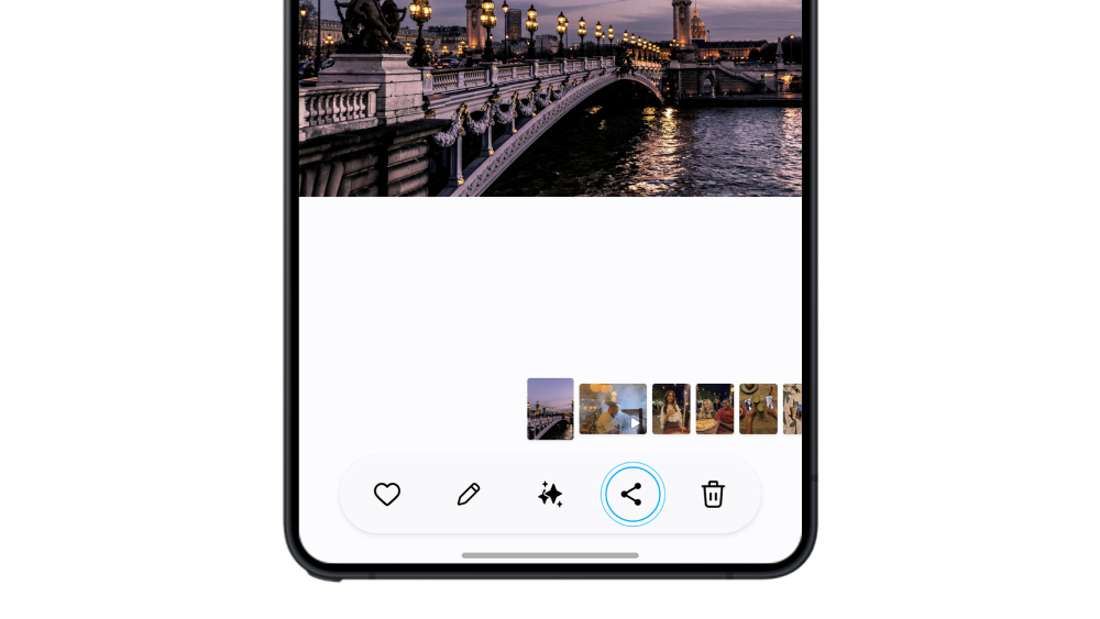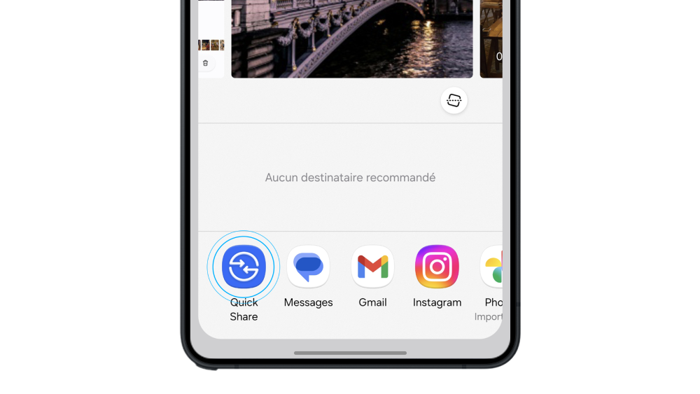 2. Cliquer sur « Partager » puis sur l’icône Quick Share ou Airdrop selon le smartphone du destinataire
