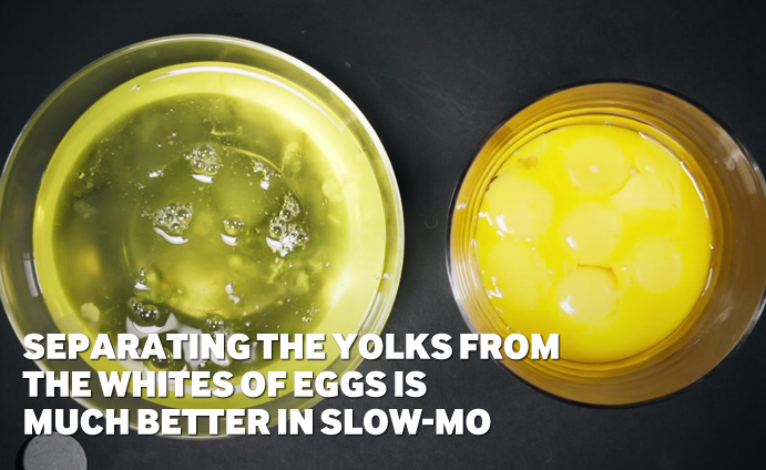 Separating the Yolks from the Whites of Eggs is much better in Slow-mo