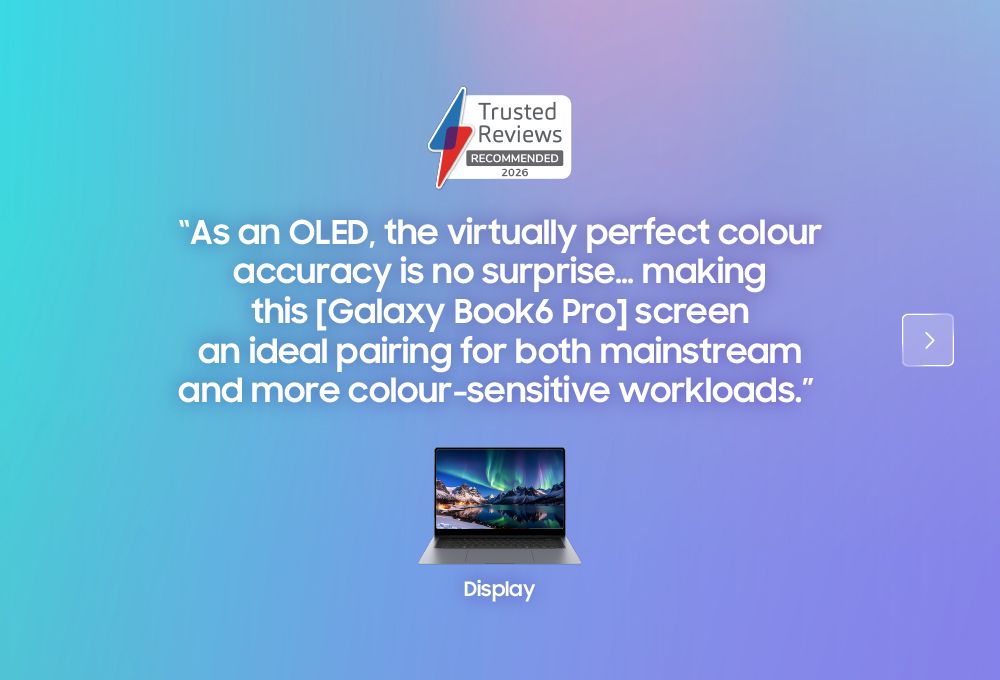 The advanced Dynamic AMOLED 2X touch display4 on Galaxy Book6 Pro and Ultra models also earned high praise, with reviewers spotlighting its vivid color accuracy, contrast and suitability for both everyday and professional creative workloads.