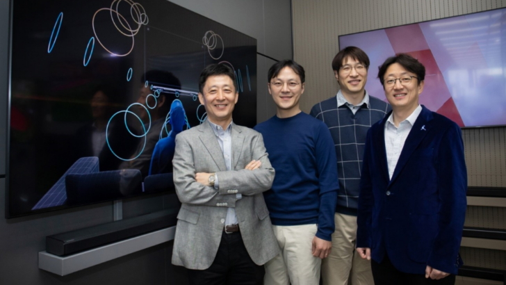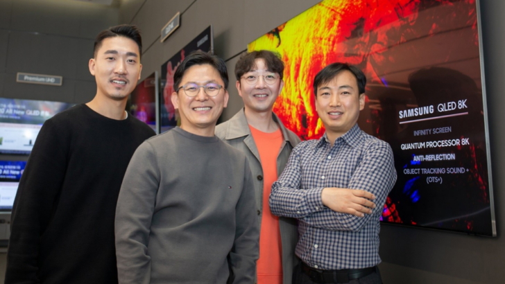 Members of Samsung Electronics’ Visual Display Division (from left): Hyun Mook Choi and Jessica BeomEun Kim, from the TV Product Planning Group, Sungchang Jang, from the Software R&D Group, and Youngho Jung, from the Panel R&D Group.