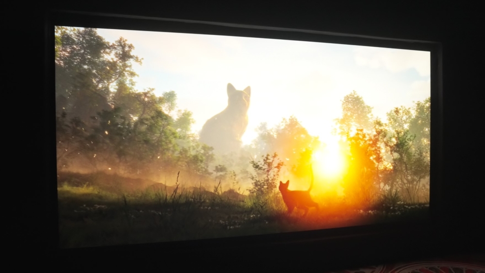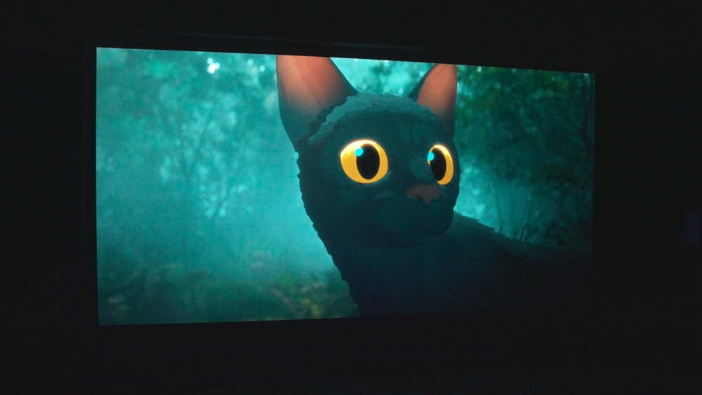 One of the goals of Flow as a dialogue-free film is to essentially have the audience come as close to the cat’s experience as possible, since the film is built around the contrast between the main protagonist and the world around it. Cinema is all about detailing in the visual storytelling, and this comes through on Onyx very well. The world is vividly colorful with the yellows, greens and blues — and then the cat is dark gray. There’s a huge contrast that shines through when watching on the Onyx screen, with its vivid colors and deep blacks.