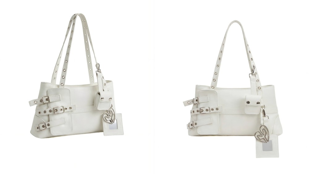 The limited-edition bag features a handcrafted leather design with a baguette silhouette, which is one of the most prominent fashion trends today. Presented in an off-white tone, the accessory combines a minimalist aesthetic with distinctive details that reflect DOMINNICO’s design identity. Adjustable straps, metallic closures and silver accents add character, while a metallic heart-shaped plaque displaying the DOMINNICO logo serves as a recognizable brand signature. A small movable mirror charm framed in leather completes the design, blending style and functionality while maintaining the brand’s avant-garde approach.