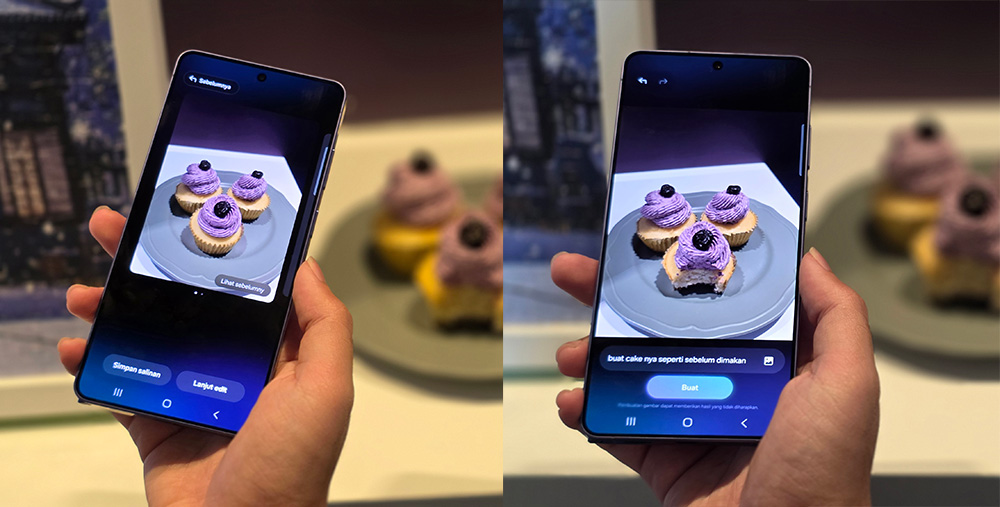 Photo Assist di Galaxy S26 Series memudahkan proses editing cukup dengan menuliskan apa yang ingin diubah melalui prompt (deskripsi singkat). Misalnya, pengguna bisa meminta mengubah suasana foto dari siang menjadi malam, mengembalikan bagian objek yang hilang seperti gigitan pada sepotong kue, atau membersihkan detail yang mengganggu seperti noda pada pakaian. Proses editing juga dibuat lebih luwes karena hasilnya dapat ditinjau langkah demi langkah serta mudah disesuaikan atau dibatalkan kapan saja.