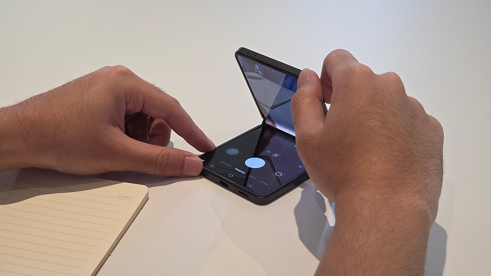 Fleksibilitas sudut lipatan ini juga membuat multitasking jadi lebih nyaman. Tata letak aplikasi otomatis menyesuaikan posisi lipatan, sehingga kontrol kamera, pemutar video, atau catatan jadi lebih mudah dijangkau. Kamu bisa menonton sambil mencatat, atau mengecek hasil rekaman sambil mempertahankan framing yang stabil.
