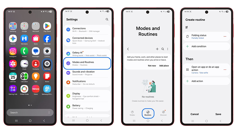 Cara mengaktifkan Automatic Routines di Galaxy Z Flip7