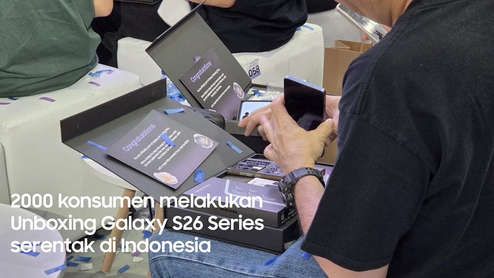 “Samsung menerima antusiasme yang luar biasa dari konsumen sejak pre-order Galaxy S26 Series dibuka pada 26 Februari 2026. Menandai resminya HP AI terbaik telah diterima ditangan konsumen Indonesia, kami menggelar Galaxy Unboxing Day, unboxing event serentak bersama 2000 konsumen Indonesia di seluruh Indonesia. Untuk konsumen yang ikut serta acara ini selain merasakan kami juga berikan ragam pengalaman menarik dan tambahan benefit spesial, mulai dari bonus aksesori seperti case dan adapter hingga hadiah tumbler eksklusif,” ujar Verry Octavianus, Head of MX Smartphone Category Management Samsung Electronics Indonesia.