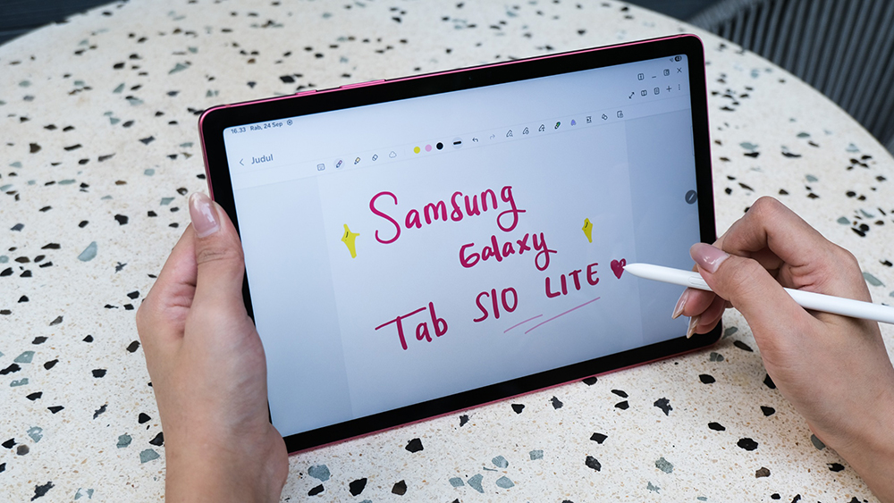 Galaxy Tab S10 Lite hadir layar luas 10,9 inci dan S Pen yang sudah tersedia dalam box pembelian, yang memberikan pengalaman menulis tangan yang presisi dan mulus, cocok menulis, mencatat kuliah, hingga corat-coret ide.