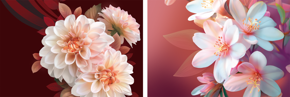 Lifelike Detailing: Intricate 2D and 3D elements evoke the richness of nature, with photo-realistic petals that appear almost in bloom.
