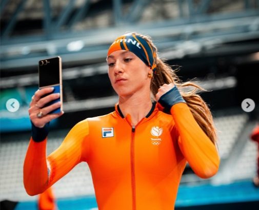Sul ghiaccio, la campionessa olimpica olandese di short track Suzanne Schulting ha condiviso selfie a bordo pista durante le giornate di allenamento, senza perdere un istante tra una serie e l’altra.