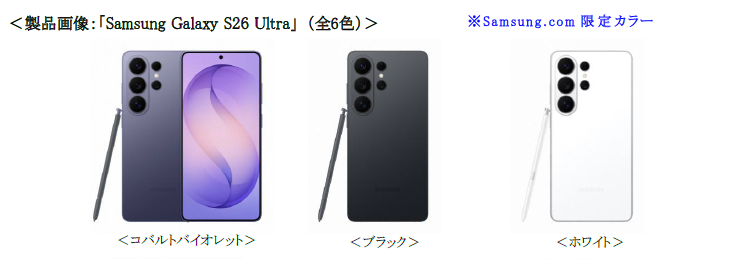 <Samsung>「Samsung Galaxy S26」「Samsung Galaxy S26+」「Samsung Galaxy S26 Ultra」(SIMフリーモデル) 2026年2月26日(木)予約開始・3月12日(木)発売