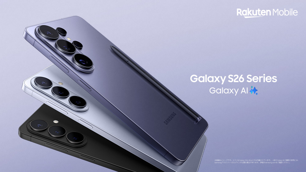 サムスン電子ジャパン株式会社(以下、サムスン)は本日、パワフルなハードウェアと業界をリードするカメラ性能、進化した直感的なGalaxy AI※1が日常をかつてないほど快適で簡単にしてくれる先回りするAIフォン「Samsung Galaxy S26」、「Samsung Galaxy S26+」※2、「Samsung Galaxy S26 Ultra」※2(以下、「Samsung Galaxy S26シリーズ」)を楽天モバイル株式会社(以下、楽天モバイル)で発売を決定いたしましたのでお知らせいたします。「Samsung Galaxy S26シリーズ」は、楽天モバイル公式サイトにて2026年2月26日(木)より、楽天モバイル公式 楽天市場店にて2026年3月2日(月)より予約受付を開始し、2026年3月12日(木)より楽天モバイル公式サイト、楽天モバイル公式 楽天市場店、楽天モバイルショップにて販売を開始いたします。