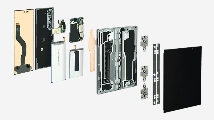 많은 연구 끝에, 개발자들은 외부 물질로 인한 디스플레이 손상을 방지하는 금속 플레이트와 다양한 조건과 환경에서도 디스플레이 패널의 폴딩 기능을 유지할 수 있도록 돕는 접착제인 ‘PSA(Pressure Sensitive Adhesive)’를 개발하는 등 폴더블 스마트폰을 실현할 기반을 마련할 수 있었다. 그 결과, 2019년에 첫 번째 갤럭시 폴드를 전 세계에 공개했다.