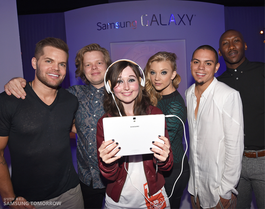 특히 갤럭시 스튜디오 방문을 위해 가장 먼저 줄을 선 팬은 출연 배우들과 함께 갤럭시 탭S와 갤럭시 레벨로 헝거게임 예고편을 감상할 수 있는 이벤트도 마련됐습니다.